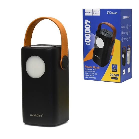 Stay powered anywhere with the RECRSI RE-PB400 40000mAh Power Bank. Built for heavy-duty use, this high-capacity portable charger is perfect for travel, business, outdoor activities, and emergency backup.
